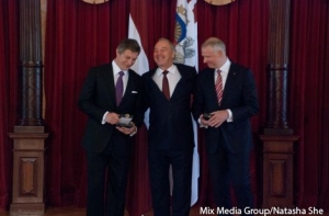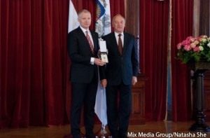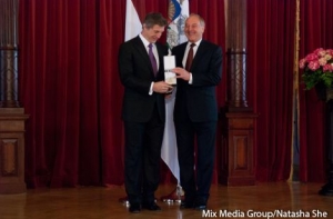 В четверг, 15 мая, капитан олимпийской сборной Латвии по хоккею и знаменосец олимпийской команды на открытии Игр-2014 в Сочи Сандис Озолиньш, а также генеральный секретарь Латвийского олимпийского комитета Жорж Тикмерс получили из рук президента Латвии Андриса Берзиньша Ордена Трех звезд.