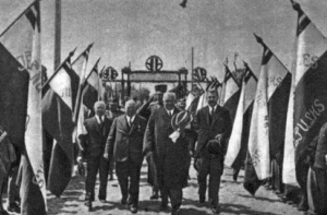 31 мая 1937 года все латышские газеты сообщили о самом светлом и радостном дне в истории города Валки - приезде туда Карлиса Улманиса. Газета «Ритс» писала: «У станции Президента встречал почётный караул айзсаргов и школьников. Автомобиль президента по улице Порукса и Райниса проехал через большие почётные ворота (триумфальную арку). Их украшала надпись: «С горячим сердцем приветствуем Тебя! Ты первый поднял в Валке флаг Латвии!».