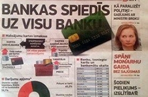 Газета Neatkarīgā пишет о том, что Еврокомиссия планирует ограничить объем денег, которые банки платят друг другу за использование их банковских карт в местах торговли. Если эту директиву примут, то банки повысят клиентам плату за карты, которая и так выросла в два-три раза. Газета рассказывает из чего складывается цена за обслуживание банковской карты, и сообщает, что в стране установлено 11142 банкомата и другие интересные цифры. В номере есть большое интервью с бывшим начальником департамента безопасности аэропорта Рига Раймондом Лаздиньшем. Он рассказывает про компромат, провокации, войну спецслужб и все такое прочее, только про скандал с прослушкой в аэропорту говорит мало, ссылаясь на тайну следствия.