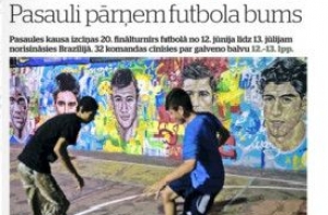 В рубрике «Экономика» - интервью с главой Агентства приватизации Ансисом Спридзансом. О приватизации санатория Кемери и банка Цитаделе. В номере есть красочное культурное приложение, в основном про театр. И футбольные страницы с календарем игр в Бразилии. Но и об успехах латвийских баскетболисток пишут. А на последней странице приглашают на благотворительный концерт Айнaрса Миелавса.