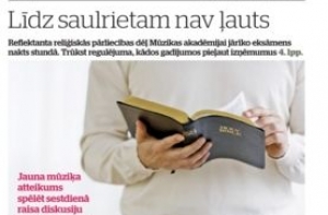 Газета Diena рассказывает, что в Музыкальной академии впервые произошел случай, когда абитуриент потребовал перенести время экзамена по религиозным убеждениям. Адвентистам седьмого дня нельзя работать по субботам, поэтому экзамен пришлось сдавать ночью. Преподавателям было неудобно, зато правозащитник похвалили, как пример толерантности. Оказалось, что никаких инструкций Министерства образования на этот случай нет. На третьей странице один из автором ограничений на продажу сельхозземли депутат Смилтенс из «Единства» рассказывает, зачем это надо. В предвыборной рубрике пишут о «Центре согласия» и о том, как он собирается привлекать к себе латышских избирателей. Еще пишут об отставке министра здоровья и о тайном кандидате на этот пост. В рубрике «Экономика» - о судьбе центра реабилитации в Лиелварде. Что из него хотят сделать? И о судьбе бумажной фабрике в Лигатне. В зарубежных новостях - про Донбасс, в рубрике «Культура» - о концерте «Рождены в Риге», который должен стать традицией.