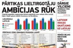 Газета Neatkarīgā пишет о том, что амбиции торговых сетей приуменшились, торговцы не будут расширять сети магазинов, наоборот, некоторые магазины исчезнут. Есть также обзор изменений цены на продовольственные продукты за погода. Очень много чего подрожало и намного. В номере есть интервью со знаменитым хирургом-кардиологом Андрейсом Эрглисом, не только про медицину, но и про политику. И про национальную гордость. Также пишут о рейдерских захватах предприятий в Латвии и о том, по каким признакам можно определить такие случаи. Также сообщают о художественных концепциях обустройства площади Ливов в Риге и о том, что какие именно скидки обеспечивает карта рижанина.
