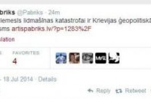По мнению экс-министра обороны, ныне депутата Европарламента Артиса Пабрикса, причиной крушения авиалайнера Boeing 777 стали российские амбиции. Об этом политик написал в своем микроблоге Twitter.