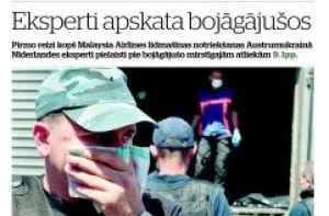 А газета Latvijas Avīze поднимает уже обсуждавшуюся в латышской прессе историю радикальных биологов, которые хотят устроить в национальном парке «Гауя» контролируемый пожар на 2,5 гектарах леса, с целью его обновления. Естественно, пишут и о расширении латвийского «черного списка» за счет российских поп-звезд. На эту тему в номере помещена и карикатура. На третьей странице председатель Общества врачей Петерис Апинис призывает сделать выводы из крушения малайзийского «Боинга» - подготовить больницы к приему многочисленных жертв катастроф,терактов или военной агрессии. Далее в номере пытаются припомнить, часто ли премьер-министр появляется в Сейме и по каким вопросам там выступает. И пишут о продолжающихся поисках кандидатов в министры здоровья.
