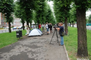 24 июля 2010 года, ночью, полиция ликвидировала палаточный городок возле здания Кабинета министров, который стоял там более полугода.Во время ликвидации в городке находился последний его обитатель – безработный инвалид Юрис Лапшинскис.