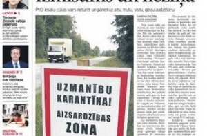 А газета Latvijas Avīze пишет о невежестве и отчаянии в зоне заражения африканской свиной чумой. Местное население в шоке, потому что не знает, где и именно и чьи свиньи будут убиты, ПВС советует крестьянам разводить кур, кроликов и коров, министерство земледелия обещает пострадавшим финансовую поддержку. На третьей странице комментаторы продолжают писать про «Новую волну» и про то, что яхта Абрамовича вооружена лучше, чем латвийская армия, впрочем, об этом известно давно. Газета напоминает, что до выборов в Сейм осталось 66 дней и публикует предвыборный список партии «Виенотиба», обращая внимание, что в нем нет видных артистов или спортсменов, зато есть потенциальный житель Марса Паулс Ирбинс. Еще в номере сообщают, что на стороне террористов на Украине сражаются так называемые добровольцы из Латвии, газета обратилась за комментариями к депутату Сейма Айнарсу Латковскису, который заявил, что это очень опасные люди с российскими паспортами, но даже если это граждане Латвии, нашими он их назвать не может.