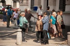 Очередь перед входом в Банк Латвии (ул. Валдемара, 2А) начала образовываться уже около 6.00 утра.
