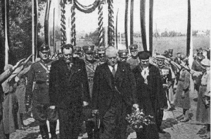 14 августа 1938 года в Балвы военный министр генерал Янис Балодис (на фото - справа) открыл памятник погибшим в 1919-20 годах латгальским партизанам и заявил, что военные навыки пригодятся и в мирное время. Памятник обошелся в 21 тысячу латов, получил прозвище «Балвский Станислав», был разрушен во время войны и восстановлен 11 ноября 1993 года.