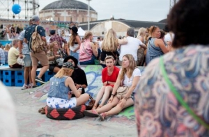 Многочисленные площадки были возведены прямо на территории недействующей электростанции, а ее старые котельные, дымовые трубы и ставший едва ли не символом фестиваля – огромный остов газгольдера – изящно вписались в общий индустриальный антураж.