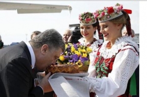 В свою очередь, изображения президента Украины Петра Порошенко, первого Верховного представителя Европейского союза по иностранным делам и политике безопасности Кетрин Эштон, а также президента Казастана Нурсултана Назарбаева подписаны обычно.