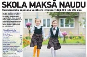 Газета Neatkarīgā пишет, что собрать в школу первоклассника обойдется родителям в среднем от 200 до 300 евро. В номере опубликована дискуссия об образовании между министром образования и главой парламентской комиссии по образованию. Главная мысль - образованию не хватает денег. Кроме того, газета пишет о телеканале ТВ24, его руководители рассказывают, как противостоят российской пропаганде. Пишут и о недавнем опросе нелатышей, с целью определения степени их лояльности, не надо было тратить на это деньги, считает обозреватель Марис Краутманис. И о том, что Эйнарс Репше вернулся в политику, но как герой второго плана. В зарубежных новостях про русскую агрессию и беспомощность ЕС, в рубрике «Культура» - интервью с кино т и театральным режиссером Гатисом Шмитсом, он рассказывает как работал над постановками Толстого и Достоевского. Еще пишут про баскетбол, пляжный волейбол и молодую латышскую певицу.