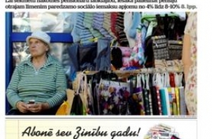Газета Diena пишет о пенсионерах и их надеждах на обеспеченную старость, для чего надо увеличить пенсию. Но этому многое мешает. Общество стареет и мало разбирается в пенсионных уровнях, жалуются банкиры. На второй странице председатель правления NP Foods Роландс Гулбис, успокаивает, что после продаже «Лаймы» норвежцам ее бренд и продукция будут сохранены. Также рассказывают, как вчера политики активно посещали школы, ведь скоро выборы. А миллионер Юрис Круминьш в свое статьей отстаивает право на шум в городе-курорте Юрмале, это он отвечает на статью в о дном из предыдущих номеров.