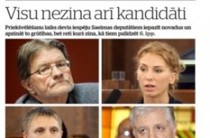 Газета Diena пишет, что предвыборное время даёт возможность депутатам Сейма съездить в провинцию и посмотреть как живут простые люди. Нo вот как им помочь, мало кто знает. Газета рассказывает, как политики открывают забытые территории и как встречаются с избирателями. Ещё в номере есть интервью с президентом Латвийского Красного Креста Викторсом Яксонсом. Он рассказывает о бедственном положении этой организации, она была на грани банкротства. А довоенную собственность Красному Кресту не вернули. Далее с возмущением сообщают об интернет-портале, который предлагает студентам написать за них эссе, рецензии, домашние работы и так далее. От 5 до 25 евро за лист.