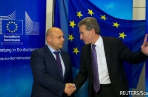 _Министр энергетики Украины Юрий Продан и еврокомиссар по энергетике Гюнтер Эттингер_