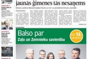 А газета Latvijas Avīze пишет, что банкиры надеются на то, что президент не провозгласит поправки к закону о неплатежеспособности о принципе оставленных ключей и пугают отказом от поддержки государственных программ. На третьей странице ректор ЛУ Марцис Аузиньш пишет о том, что партиям нечего предложить в области высшего образования и науки. А ветеран общества политрепрессированных Таливалдис Петерсонс осуждает латышей, которые не хотят идти на выборы. И публикует призывы к партиям и избирателям.
