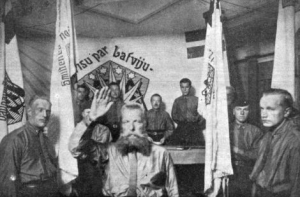 4 октября 1924 года в Риге на Эспланаде прошел митинг Латвийского национального клуба, в тот же день члены клуба во главе с руководителем - полковником Тютисом (на фото-с бородой) принесли торжественную клятву: «Я клянусь, что с чистой совестью и непреложной верой везде и всегда, но особенно в трудные моменты для нашего народа, защищать свободу Латвии, независимость и честь и буду высоко нести латвийскую национальную идею».
