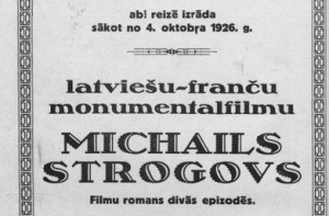 4 октября 1926 года в Риге в кинотеатрах Palladium и Splendid Palace состоялась премьера французско-германского фильма «Михаил Строгов», снятого русским режиссёром Виктром Туржанским по роману Жюля Верна «Михаил Строгов: курьер царя». Часть фильма снималась в Латгалии, изображавшей Сибирь, а солдаты латвийской армии изображали казаков. В главной роли - Иван Мозжухин.