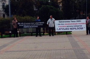 «Эти выборы незаконны – у 350 тыс. жителей Латвии нет права голоса», – гласит один плакат.