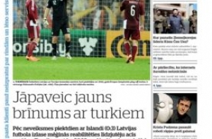 Газета Diena надеется, что, проиграв исландцам, латвийские футболисты смогут реабилитировать себя в матче с Турцией. И напоминает, что в 2003 году над турецкой сборной была одержана самая знаменитая победа в истории латвийского футбола. На третьей странице пишут о сближении Национального и Регионального объединений. Даже если регионалов не пустят в коалицию, они все равно будут дружить с националами, пишет газета по итогам встречи лидеров двух политических сил. В номере есть большое интервью с Ингой Горбуновой, руководительницей издания «Диенас журнали», и это понятно - началась подписка. Издательница рассказывает о своих планах и тенденциях журнального рынка. Далее предупреждают девушек о том, что даже хорошо одетый и образованный юноша вполне может быть инфицирован ВИЧ либо другим сексуально-трансмиссивным заболеванием. Так как именно в молодёжной среде они в последнее время распространились.