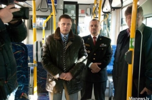 В рамках акции, прошедшей сегодня на кольце общественного транспорта на улице Спикеру, была инсценирована ситуация, когда двое молодых людей ведут себя в транспорте вызывающе и мешают другим пассажирам. На «место происшествия» по вызову одного из находившихся в транспорте приехали сотрудники муниципальной полиции и выпроводили нарушителей из салона троллейбуса.
