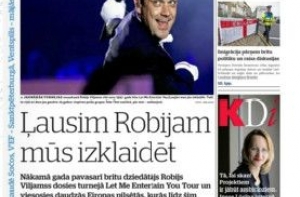 Газета Diena ожидает приезда в Ригу британского певца Робби Уильямса, 6 апреля, в рамках всемирного турне. На второй странице - карикатура на главу российского Центризбиркома, а глава Торгово-промышленной палаты Янис Эндзиньш, комментирует последний рейтинг стран, благоприятных для бизнеса, в котором Латвия поднялась на одно место - с 24-го на 23-е. Далее - фоторепортаж из Художественного музея, который откроется только весной 2016, но уже отремонтирована крыша и вырыт большой подвал.