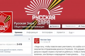 Пользователь **iNga jakobs ON** обратил внимание Госполиции, Латвийского телевидения и журналистов на профиль общественной организации Русская Заря в Facebook.