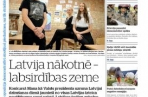 Газета Diena пишет об участниках школьного конкурса «Моя президентская речь в день рождения Латвии». Сегодня победителей награждает президент. Газета подчёркивает, что молодежь готова достигать своих целей в Латвии и нести её имя в мир. На третьей странице - интервью с министром образования и науки Марите Сейле, главным образом, про заработную плату учителей. Но также рассказывает о своих приоритетах. Потом сообщают, что на Бастионной горке в Риге открыта художественная работа под названием «Скамейки». С виду, действительно, как скамейки. В зарубежных новостях - о российской военной угрозе, а в приложении для пенсионеров - о пенсионерском обществе в городе Смилтене. А также с продолжением публикуют фрагменты книги Виктора Суворова-Резуна «Ледокол».