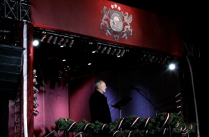 18 ноября 2011 года президент Андрис Берзиньш, обращаясь к собравшимся в Риге около памятника Свободы, подчеркнул значимость этого места в истории страны и призвал латвийцев искать не врагов, а единомышленников, так как только сообща можно построить сильное государство. Во время речи несколько человек в масках развернули плакаты: «Не врите, Латвия продана иностранным банкам», «Независимость потеряли, вступив в ЕС», «Кангаров на мыло».