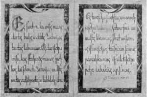 18 ноября 1922 года на торжественном заседании Сейма первый президент Латвии Янис Чаксте принёс присягу в верности Конституции. На фото - текст присяги.
