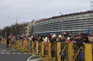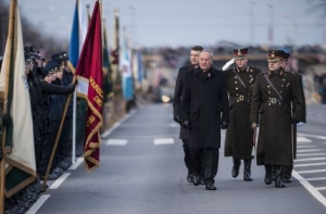 С трибуны в праздничном убранстве за происходящим наблюдали первые лица страны - президент Андрис Берзиньш, спикер Сейма, вице-спикер парламента, премьер-министр, председатель Конституционного суда, а также лидеры политических партий.