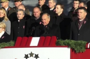 Президент Латвии выразил военнослужащим Национальных вооруженных сил, сотрудникам МВД и дружинам Яунсардзе благодарность за вклад в развитие Латвии, высоко оценив их работу в сфере обороны и общественной безопасности. Президент заявил, что Латвия гордится своими воинами, земессаргами, пограничниками, полицейскими - всеми, кто стоит на страже безопасности и порядка. «18 ноября Латвия может воочию и заочно наблюдать, насколько убедительны и профессиональны наши стражи мира», - сказал он.