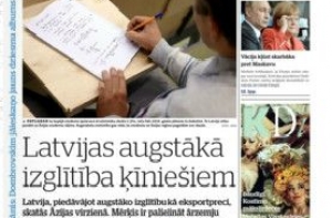 Газета Diena пишет о том, что Латвия вполне могла бы давать высшее образование китайцам и тем самым вдвое повысить количество иностранных студентов. Да и представитель министерства образования КНР не против, надо только договор подписать. Потому что сейчас китайские студенты едут главным образом в США и Великобританию. Еще пишут о дискуссиях в Сейме по поводу законопроекта о местных референдумах, который уже принят во втором чтении, и остался в наследство от прежнего парламента. Газета продолжает писать о месте инвалидов на рынке труда, в этот раз рассказывают о неслышащем Марисе, который уже 20 лет работает в сельском хозяйстве. Тут же сообщают, что лицам с нарушением слуха Общество глухих предоставляет услуги сурдопереводчика, оплаченные государством