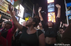 По словам журналиста, требования протестующих в целом сводились к одному – чтобы система изменила свое отношение к чернокожим в Америке, чтобы их не рассматривали как преступников просто потому, что они имеют другой цвет кожи. «Никто открыто не требовал пересмотра дела того офицера, который застрелил чернокожего парня в августе, все просто выражали возмущение решением суда присяжных», - подчеркнул журналист.