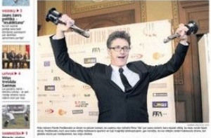 А газета Latvijas Avīze публикует репортаж с церемонии вручения наград Европейской киноакадемии в Латвийской Национальной опере. А также сообщает, что штраф за превышение квоты на молоко может составит 4,9 миллионов евро. Латвия превысила квоту на 2,3 процента. Газета рассказывает, как это всё рассчитывается и указывает, что молоко выгоднее выливать, чем продавать. На третьей странице известный художник Агрис Лиепиньш пишет, что программа укрепления лояльности инородцев это, конечно, хорошо, но он неоднократно сталкивался со случаями, когда живущие в информационном пространстве Кремля русскоязычные начинали говорить, что в Латвии всё плохо: коррупция, маленькие пенсии и зарплаты, все уезжают, а правительство надо гнать поганой метлой. И латыши соглашались с этой кремлёвской пропагандой, ужасается художник. Тут никакие программы для русских не помогут, если латыши сами плюют на свое отечество, убежден Лиепиньш.