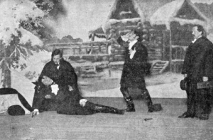 9 января 1913 года (по новому стилю) в Риге впервые прозвучала опера на латышском языке, с участием только латышских певцов - «Евгений Онегин» Чайковского. Постановщик и дирижёр - Павулс Юрьянс, в роли Онегина - Екабс Карпс, Татьяна - Олга Свайнис-Зиедынь, Ленский - Паулс Заксс. На фото - сцена дуэли.