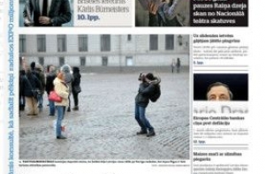 Газета Diena пишет о развитии туризма. Туристов из России стало меньше, но их интерес к Латвии сохраняется. Приводятся данные и о гостях из других стран. Туристическая отрасль признана стратегической и ее хотят сосредоточить под одним руководством, пишет газета. На второй странице нарисован президент Берзиньш с неестественно вывороченными руками и гранатометом, стоящий на пути русского танка.