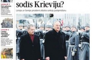 А газета Latvijas Avīze надется, что объединенная Европа еще больше накажет Россию. По крайней мере, президенты Латвии и Финляндии договорились об ужесточении антироссийских санкций. На второй странице Виестурс Спруде высмеивает российских историков и их документы о том, кто на самом деле освобождал Освенцим. Лично он обнаружил среди бойцов 60-й армии 1-го Украинского фронта латышей и латгальцев. Далее газета продолжает тему государственного телевидения и беседует с директором новостных, документальных и спортивных программ ЛТВ Ритой Рудушей. Настойчиво выспрашивая у нее: не боится ои она отпугнуть латышских телезрителей программами на русском языке? Но пока рейтинги этого никак не отражают. Также опубликованы суммы заплат работников ЛТВ. Гендиректор получает 3 415 евро в месяц.