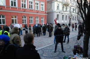 В тот же день около 120 человек собрались у здания Сейма, чтобы принять участие в «Акции пингвинов».