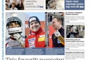 Газета Diena пишет о наших надеждах на чемпионате мира по бобслею. На второй странице - интервью с юмористом Каспарсом Брейдаксом, который уверяет, что у латышей с юмором всё хорошо. А мнение, что латыши холодные и закрытые - устарело. Далее в номере рассказ о том, что пришлoсь пережить женщине, которая долго судилась с Рижским сиротским судом в Рижском окружном суде. И во сколько ей это обошлось. Газета продолжает акцию «Учитель - профессия будущего» с целю привлечения молодёжи в педагоги.