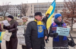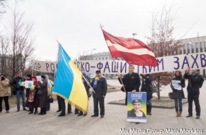 Как сообщил корреспондент радио Baltkom, пикетчики держали в руках флаги Украины и Латвии, а также плакаты с надписями: «Молитесь за Савченко!», «Свободу Надежде Савченко!», «Позор российско-фашистским захватчикам».