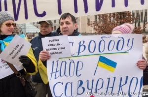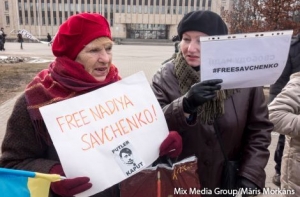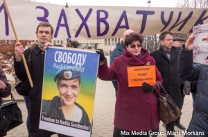 В пятницу, 6 марта, в Риге около посольства России прошел пикет в поддержку украинской летчицы Надежды Савченко. В акции приняли участие около 20 человек.