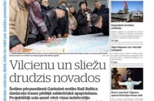Газета Diena пишет о бурном обсуждении в регионах проекта железнодорожной трассы «Рэйл Балтика» Сегодня его обсуждают в Гаркалне. Пока еще нет ясности с компенсациям людям, по чьим домам пройдёт магистраль, указывает газета и публикует карту. Газета продолжает писать о проблемах и недостатках сиротских судов, находя все новые примеры их необъективности. Также снова пишут о ревизиях Госконтроля, обнаруживших нарушения в работе социальных служб ряда самоуправлений. В рубрике «Экономика» - о повышении зарплат, которое может способствовать расцвету экономики. А не наоборот. На эту темы высказываются экономисты и исследователи рынка. В зарубежных новостях - о промосковских сепаратистах, в рубрике «Культура» - про мастера ударных инструментов и композитора Рихарда Зальупе и его первую симфонию, а на последней странице приглашают на концерты народной музыки со световыми эффектами в Елгаве, 14 марта. И в других городах позже.