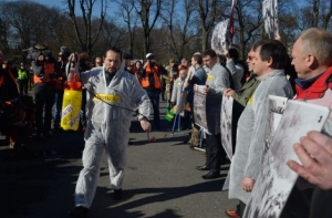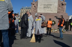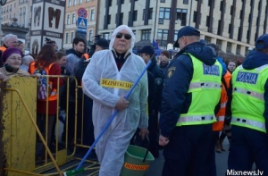 В мероприятии участвовало примерно 15 членов комитета. Как сообщил корреспондент радио Baltkom, все участники были одеты в белые накидки, сзади которых было написано «Дезинфекция». Вооружившись пластмассовыми мешками и щетками, они, направляясь к памятнику Свободы, очищали свой путь.