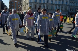 Как уже сообщалось ранее, около 15 представителей Латвийского антинацистского комитета перед возложением к памятнику Свободы венка памяти жертв фашизма предварительно «продезинфицировали» площадь у монумента.