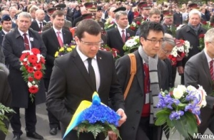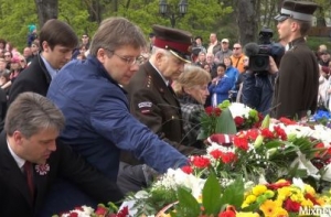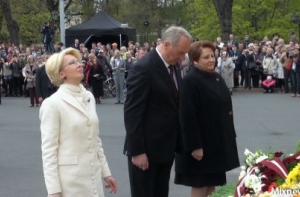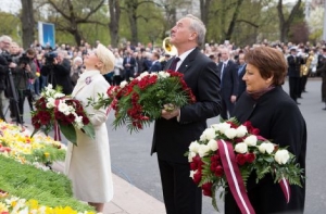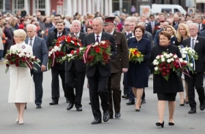 Цветы к памятнику Свободы возложили главные лица страны – президент Латвии Андрис Берзиньш, спикер Сейма Инара Мурниеце и премьер-министр Лаймдота Страуюма.