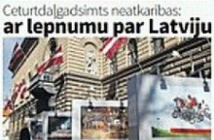 Газета Neatkarīgā пишет о вчерашнем празднике и о гордости за Латвию, которою испытывали его участники. Тут же известного журналиста Лато Лапсу сравнивают с Карлсоном и пишут что журналист курощает Полицию безопасности, как Карлсон фрекен Бок. Ещё пишут о продовольственных посылках для бедных и о том, как их можно получить. И о том, что только 5 процентов опрошенных жителей Латвии считают, что в стране можно найти хорошую работу. 64 процента к такой возможности относятся скептически. Еще пишут о единственной в Латвии ферме, где разводят сурков, в Алсунгском крае.