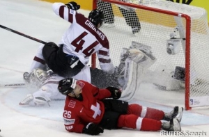Сборная Латвии по хоккею провела четвертый матч на чемпионате мира в Чехии. Сегодня она встречалась со сборной Швейцарии и одержала победу со счетом 2:1.