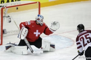 Первую шайбу в ворота сборной Швейцарии во втором периоде забросил Андрис Джериньш.