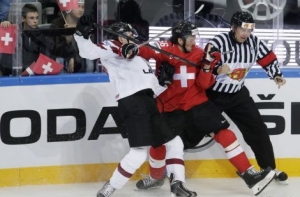 В третьем периоде швейцарский хоккеист Маттиас Бибер сравнял счет - 1:1.