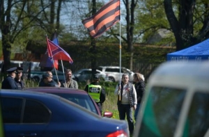 Сегодня, 9 мая, полиция не позволила политическому активисту Владимиру Линдерману пройти к памятнику Освободителям с флагами самопровозглашенной ДНР и флагом цветов георгиевской ленточки. Об этом сообщает корреспондент радиостанции Baltkom.
